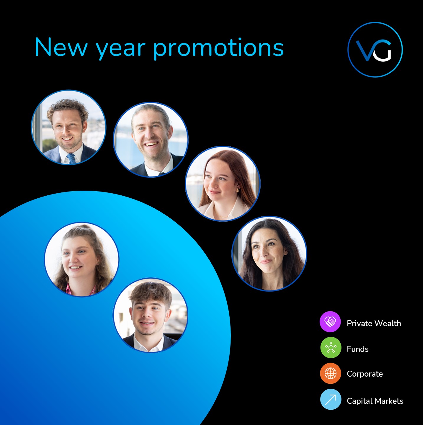 VG, a leading provider of private wealth, funds, corporate and capital markets services headquartered in Jersey, has promoted six colleagues in its latest round of promotions which supports the firm’s accelerated growth plans.In our Corporate business, Jake McMichael has been promoted to Manager, Zach Ellam has been promoted to Assistant Manager and Keira Softly has successfully completed her training to become Corporate Administrator.